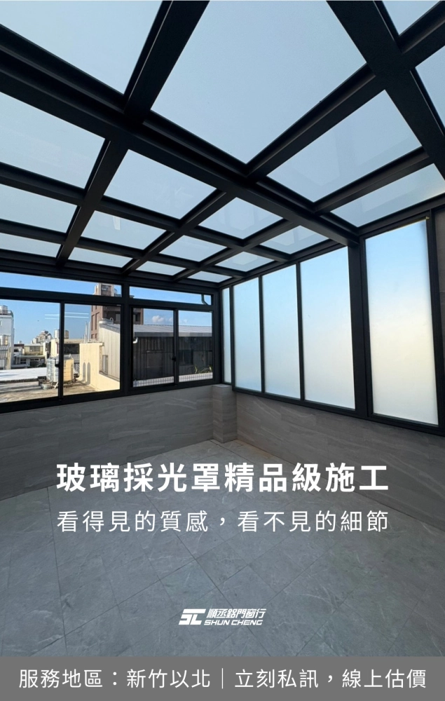 量身設計與安裝各式採光罩,兼具遮雨、遮陽與採光效果,適用於陽台、騎樓、露臺等空間,讓您無論晴雨都能自在使用戶外空間。